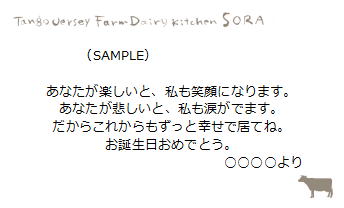 備考欄に記入してください。どこからがメッセージかがわかるように記入いただけますと助かります。名刺サイズ(55mm×91mm)ですので、あまり字数が多いと小さい文字になります。