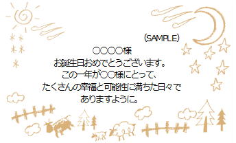 例)Happy Birthday!など