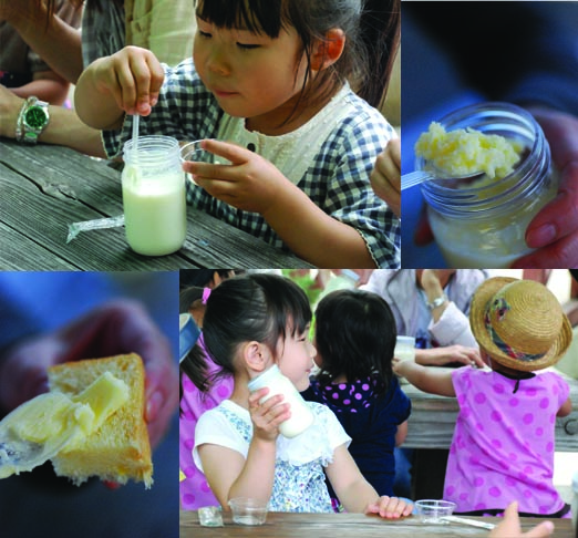 ジャージー牛乳のみで作るバター作り体験です。生クリームなど入れず、ジャージー牛乳のみで作るバターは牛乳の濃厚な味がします。